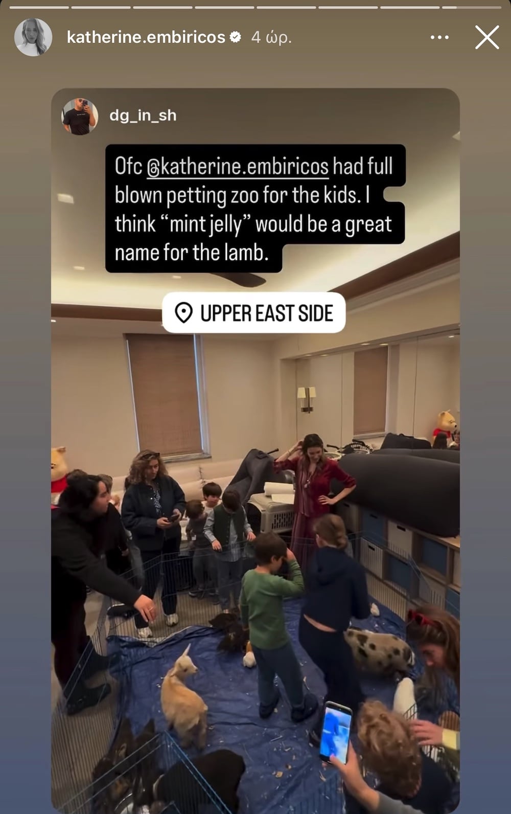 Στο Upper East Side της Νέας Υόρκης, εκεί όπου τα σπίτια μοιάζουν να κρύβουν μικρούς ιδιωτικούς κόσμους, τα outfits της Κυριακής του Πάσχα φέτος δεν ακολούθησαν κανέναν κανόνα. Δεν υπήρχαν dress codes ή προσδοκίες, μόνο μια αίσθηση ελευθερίας μέσα σε ένα σπίτι γεμάτο φίλους, οικογένειες και παιδιά, σε μια συνάντηση που έμοιαζε περισσότερο με ζωντανό, ιδιωτικό κόσμο παρά με ένα τυπικό κοινωνικό κάλεσμα. Οικοδέσποινα η Catherine Empiricos, που υποδέχτηκε ανθρώπους από τον προσωπικό της κύκλο, ενώ ανάμεσά τους βρέθηκε και η Σοφία Καρβέλα, μαζί με τα παιδιά της, σε ένα σκηνικό όπου οι μεγάλοι συζητούσαν και τα παιδιά κινούνταν ελεύθερα, δίνοντας τον ρυθμό της ημέρας.