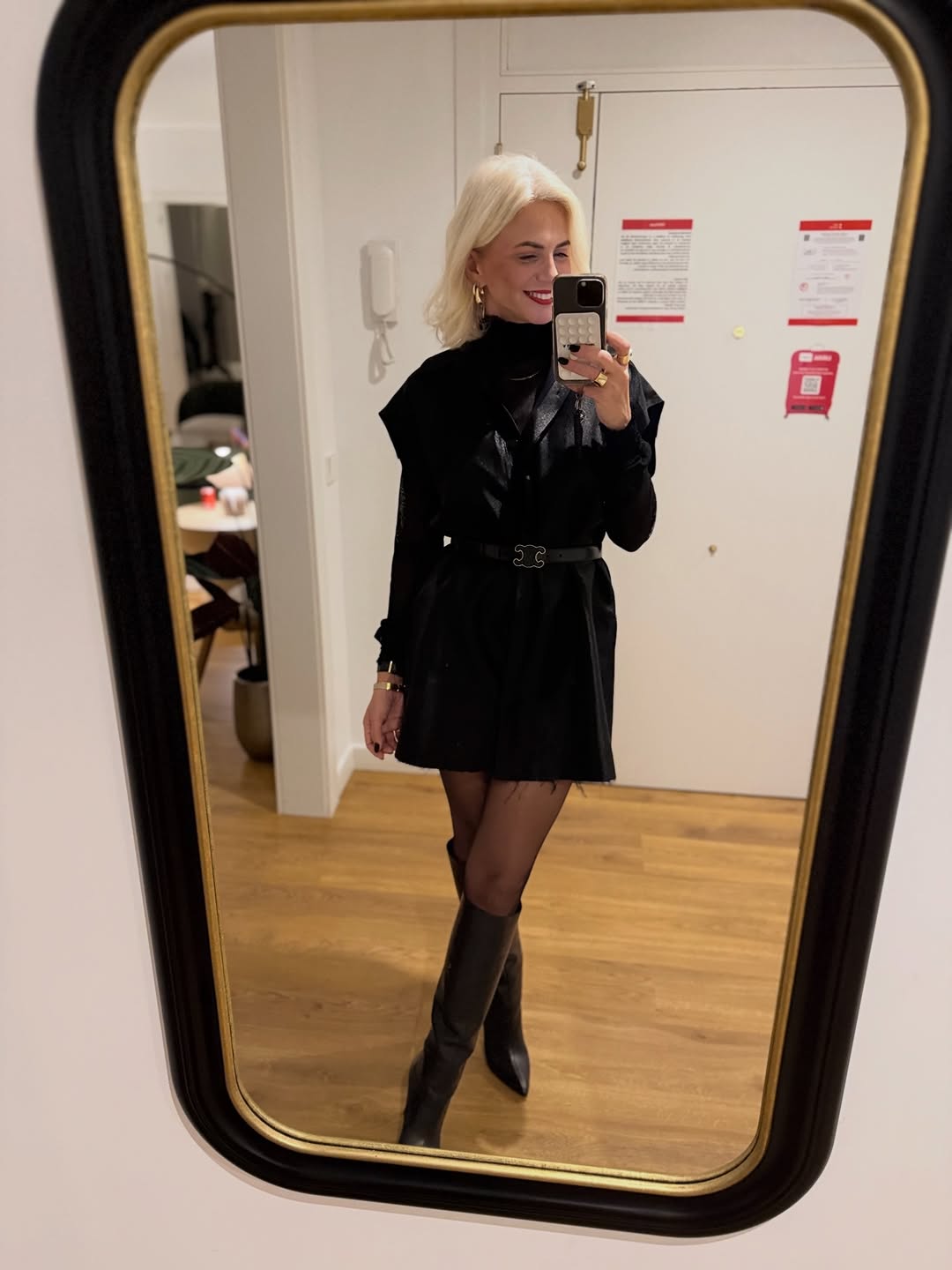 Για τις βραδινές εξόδους με κοκτέιλ, η Χριστίνα Κοντοβά κινήθηκε σε πιο αυστηρές γραμμές, φορώντας μαύρο mini φόρεμα με Chanel ζώνη στη μέση και ψηλές μπότες, δίνοντας έμφαση στη σιλουέτα. Σε ακόμη μία βραδινή επιλογή, επέλεξε μαύρο εφαρμοστό top σε συνδυασμό με ψηλόμεσο δερμάτινο παντελόνι, ολοκληρώνοντας το look με minimal αξεσουάρ και καφέ μπότες.