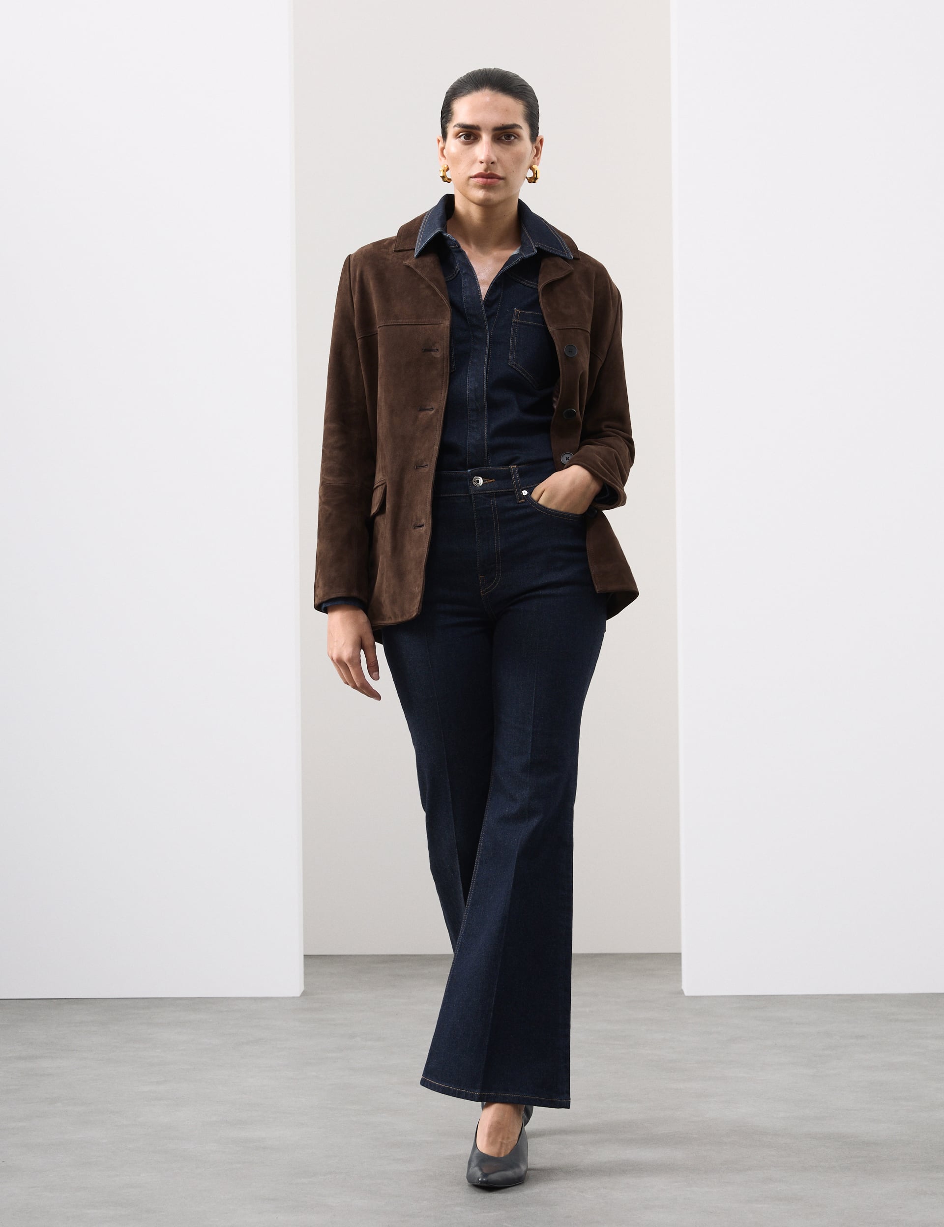 Η δύναμη της συλλογής βρίσκεται στη λεπτομέρεια: καθαρές ραφές, σωστές αναλογίες, υφές που αποπνέουν ποιότητα χωρίς να επιδιώκουν εντυπωσιασμό. Το τζιν εδώ δεν είναι trend piece· είναι το σταθερό, αξιόπιστο κομμάτι που «χτίζει» την καθημερινή γκαρνταρόμπα.
