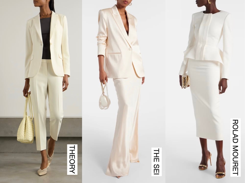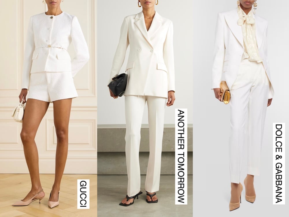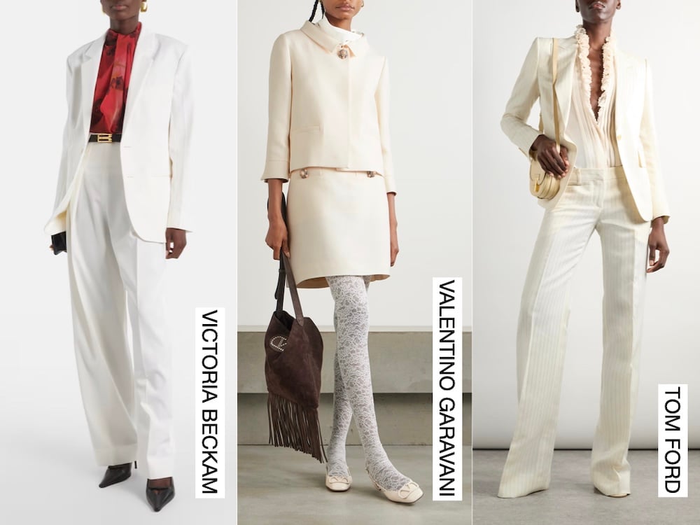 Στις συλλογές που βρίσκουμε φέτος στα μεγαλύτερα e-shops, το λευκό κοστούμι εμφανίζεται σε όλες του τις εκδοχές, από μίνιμαλ tailoring μέχρι πιο θηλυκές ή θεατρικές αναγνώσεις.