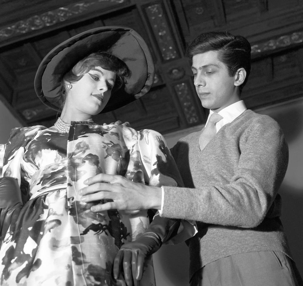 1959, Ρώμη, Ιταλία: Ετοιμάζοντας ένα μοντέλο για ένα από τα fashion shows του.