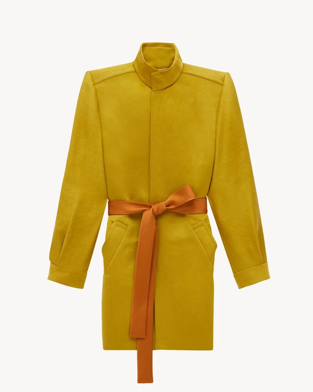 Saint Laurent – Belted coat in stonewash silk satin