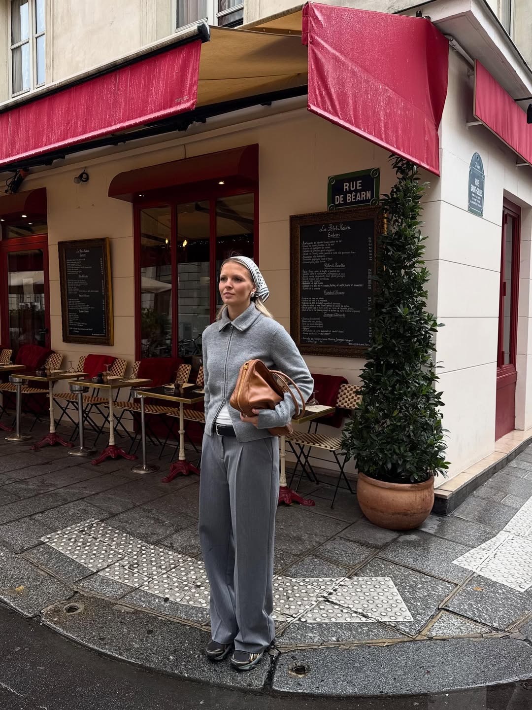 Το γκρι χρώμα δίνει πάντα έναν σοφιστικέ αέρα στο ντύσιμο του χειμώνα. Αν το επιλέξεις από τώρα, συνδύασέ το με ένα μαντήλι στα μαλλιά για πιο ανάλαφρη διάθεση και ένα light fall mood.