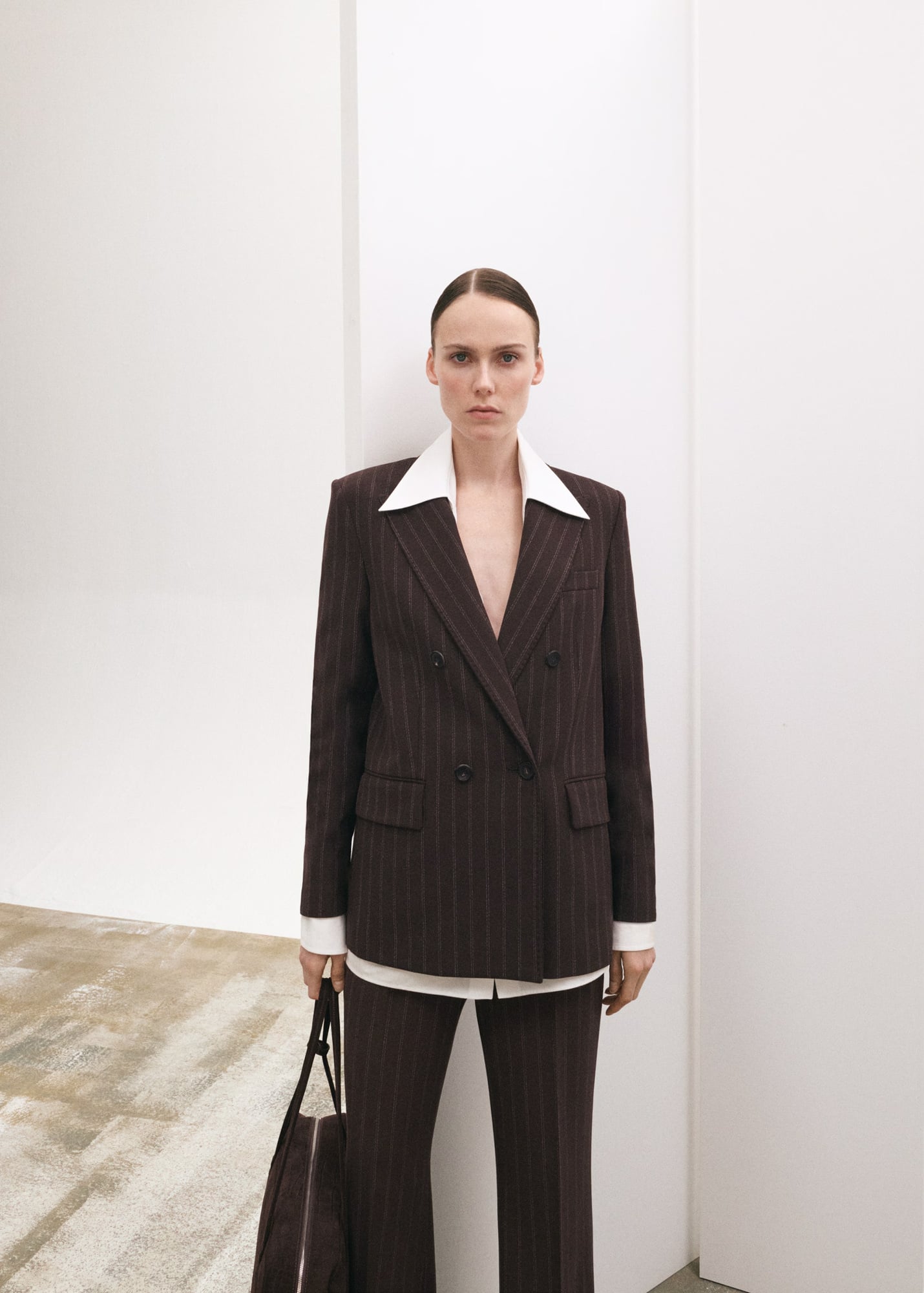 Η γυναικεία συλλογή κινείται σε μια παλέτα με γήινους τόνους και soft επιφάνειες. Το πλεκτό πουλόβερ με υφή συνθετικής γούνας δίνει αμέσως τον εορταστικό χαρακτήρα της εποχής, ενώ το καρό παντελόνι σε wide leg γραμμή προσθέτει άνεση και ρυθμό στην κίνηση. Το oversized δερμάτινο τζάκετ προσφέρει μία urban προσέγγιση στο winter layering, την ώρα που το εκρού πλεκτό με λεπτομέρειες βολάν δίνει μια πιο ρομαντική νότα. Το double-breasted σακάκι με stripes ολοκληρώνει την εικόνα με καθαρό tailoring, ιδανικό για office ή πιο επίσημες εμφανίσεις.