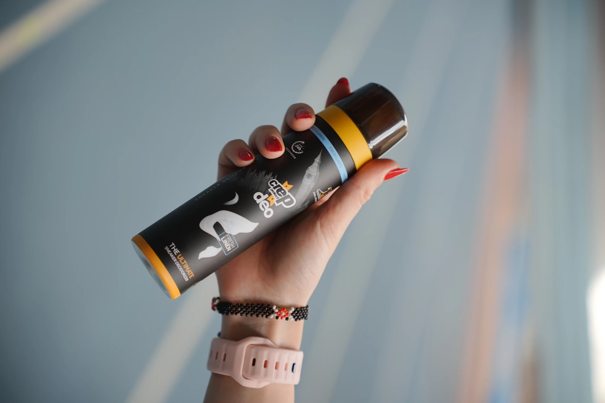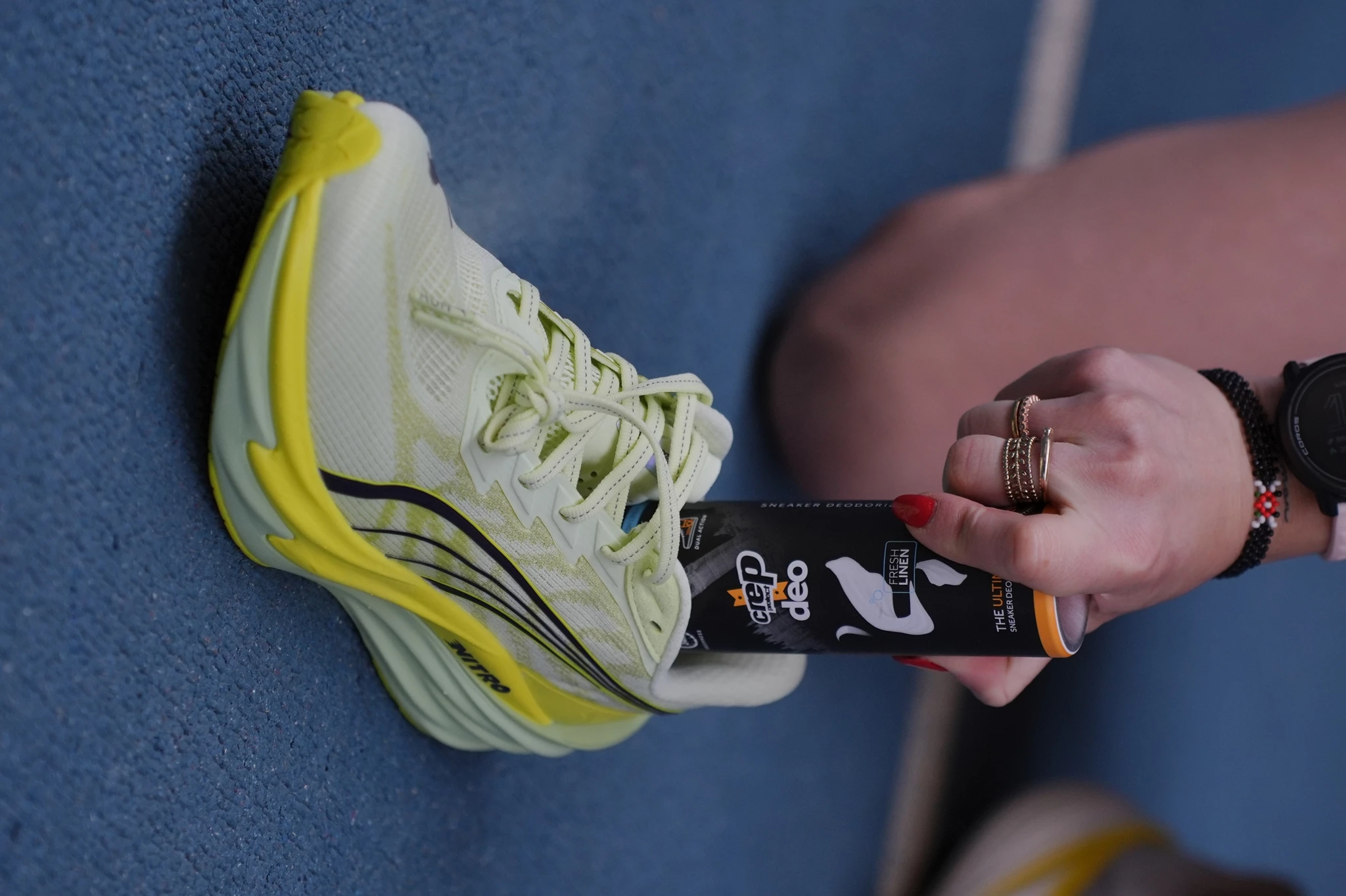 Το τρίτο και τελευταίο βήμα στη ρουτίνα μου αφορά ένα σημείο που, στην πραγματικότητα, καθορίζει περισσότερο απ’ όσο νομίζουμε τη συνολική αίσθηση των αθλητικών παπουτσιών: το εσωτερικό τους. Εκεί ακριβώς χρησιμοποιώ το Crep Protect Deo, ένα εξειδικευμένο αποσμητικό για sneakers, σχεδιασμένο να δρα αποκλειστικά στο εσωτερικό του παπουτσιού.