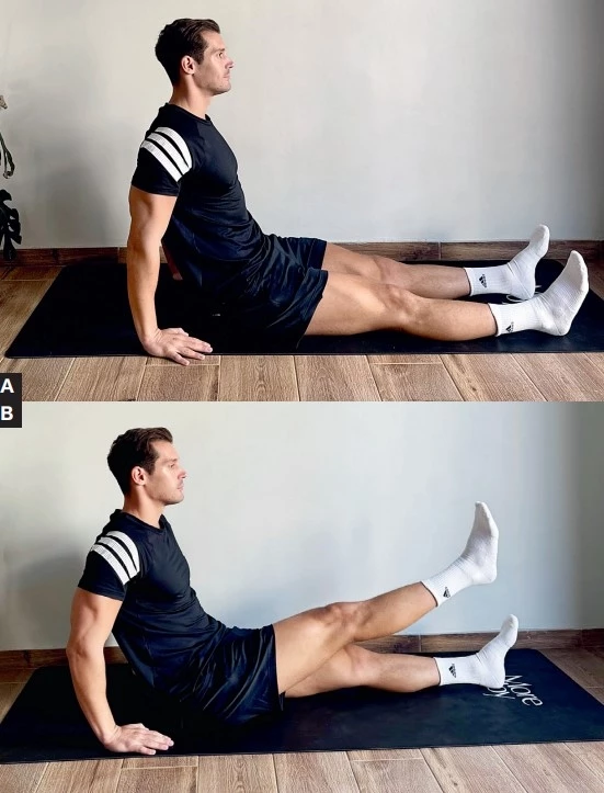B. Διατηρείς το πόδι σου τεντωμένο και εκτελείς άρσεις δίνοντας έμφαση στον τετρακέφαλο μυ. Κάνε 4 σετ από 20 επαναλήψεις για κάθε πόδι.
