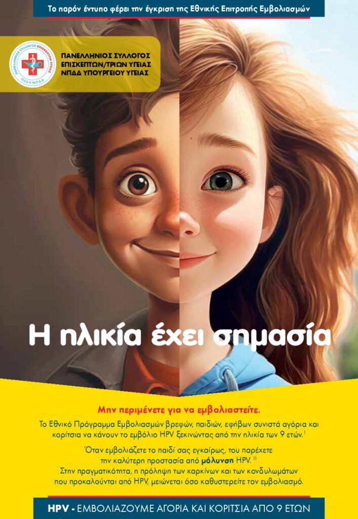 - σε αγόρια και κορίτσια ηλικίας 9-11 ετών. Σε περίπτωση που ο εμβολιασμός δεν γίνει στη συνιστώμενη ηλικία, μπορεί να γίνει αναπλήρωση έως την ηλικία των 18 ετών. Επισημαίνεται ότι το εμβόλιο HPV αποζημιώνεται πλήρως σε αγόρια και κορίτσια ηλικίας 15-18 ετών μέχρι 31.12.2025.