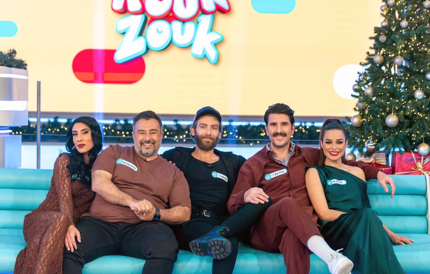 Από τη μία πλευρά του στούντιο, λοιπόν, είναι οι «ΣΑΝΤΡΕ» με τους Έλλη Τρίγκου, Δανάη Λουκάκη, Λένα Ουζουνίδου, Γιούλη Τσαγκαράκη και Βασίλη Μυριανθόπουλο.