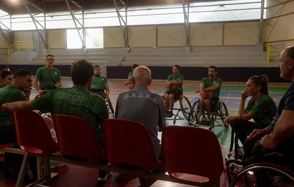 Παράλληλα, παρακολουθούμε την απαιτητική προπόνηση της Γεωργίας Καλτσή και των συμπαικτών της στον Πανελλήνιο Αθλητικό Σύλλογο Κινητικά Αναπήρων, την επισκεπτόμαστε στο σπίτι της, όπου μας ξεναγεί στον προσωπικό της χώρο και γνωρίζουμε την αγαπημένη της Μπλου.