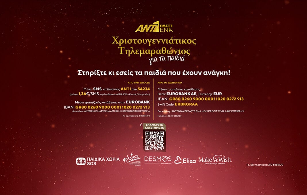 Ο Χριστουγεννιάτικος Τηλεμαραθώνιος Αλληλεγγύης του ΑΝΤ1 υπενθυμίζει ότι κανένα παιδί δεν πρέπει να νιώθει μόνο. Με τη συμμετοχή όλων μας, μπορούμε να γεμίσουμε τις καρδιές τους με ζεστασιά, χαμόγελα και όνειρα, προσφέροντας ασφάλεια, αγάπη και ελπίδα για το μέλλον.