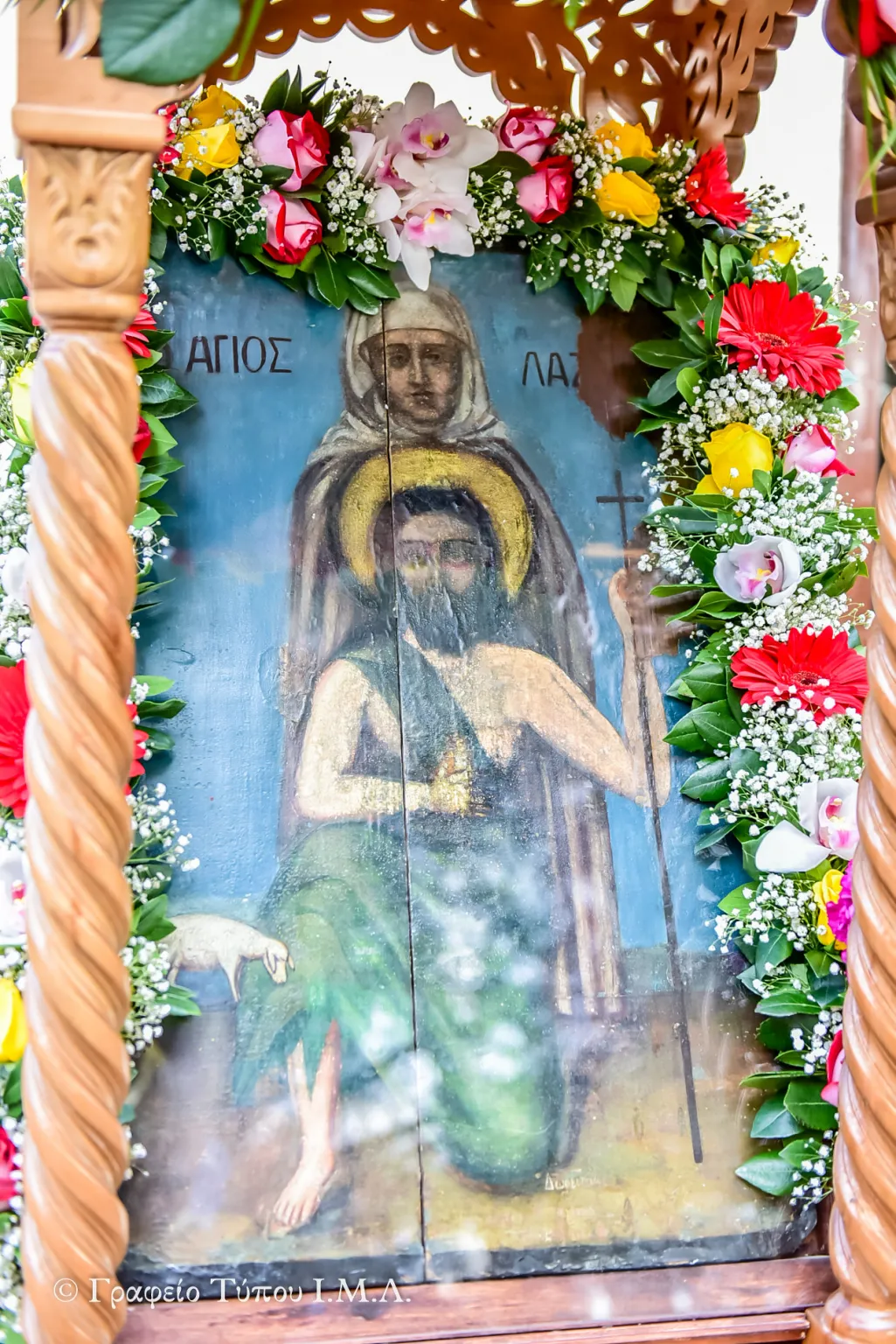 Στο παρεκκλήσιο του Αγίου Λαζάρου όπως μαρτυρούν κάτοικοι της περιοχής υπάρχουν αποτυπωμένα τα άμφια και οι παλάμες του Αγίου στο βελούδινο ύφασμα της Ωραίας Πύλης.
