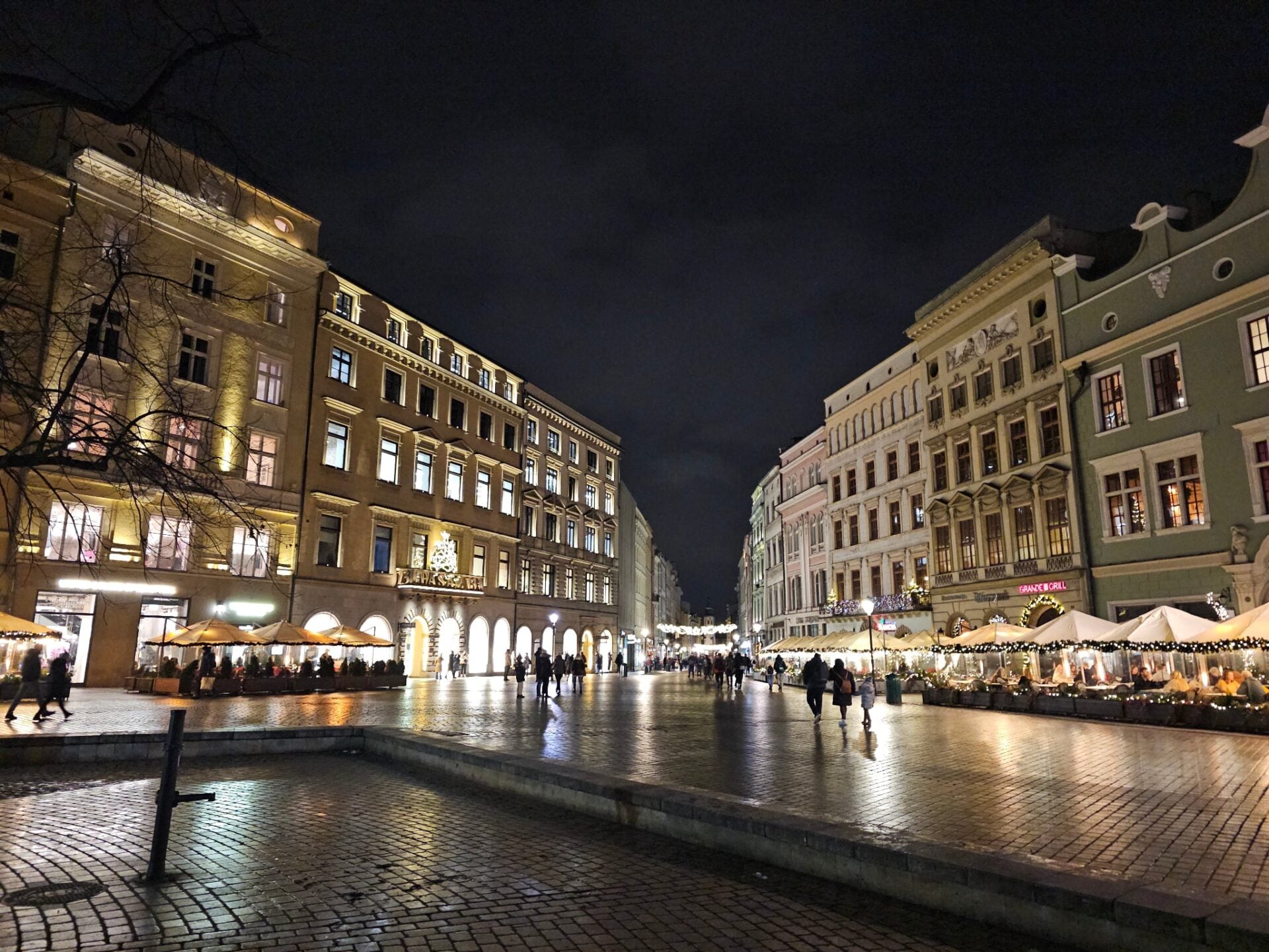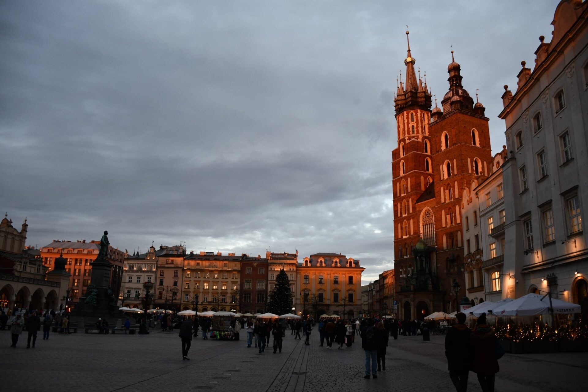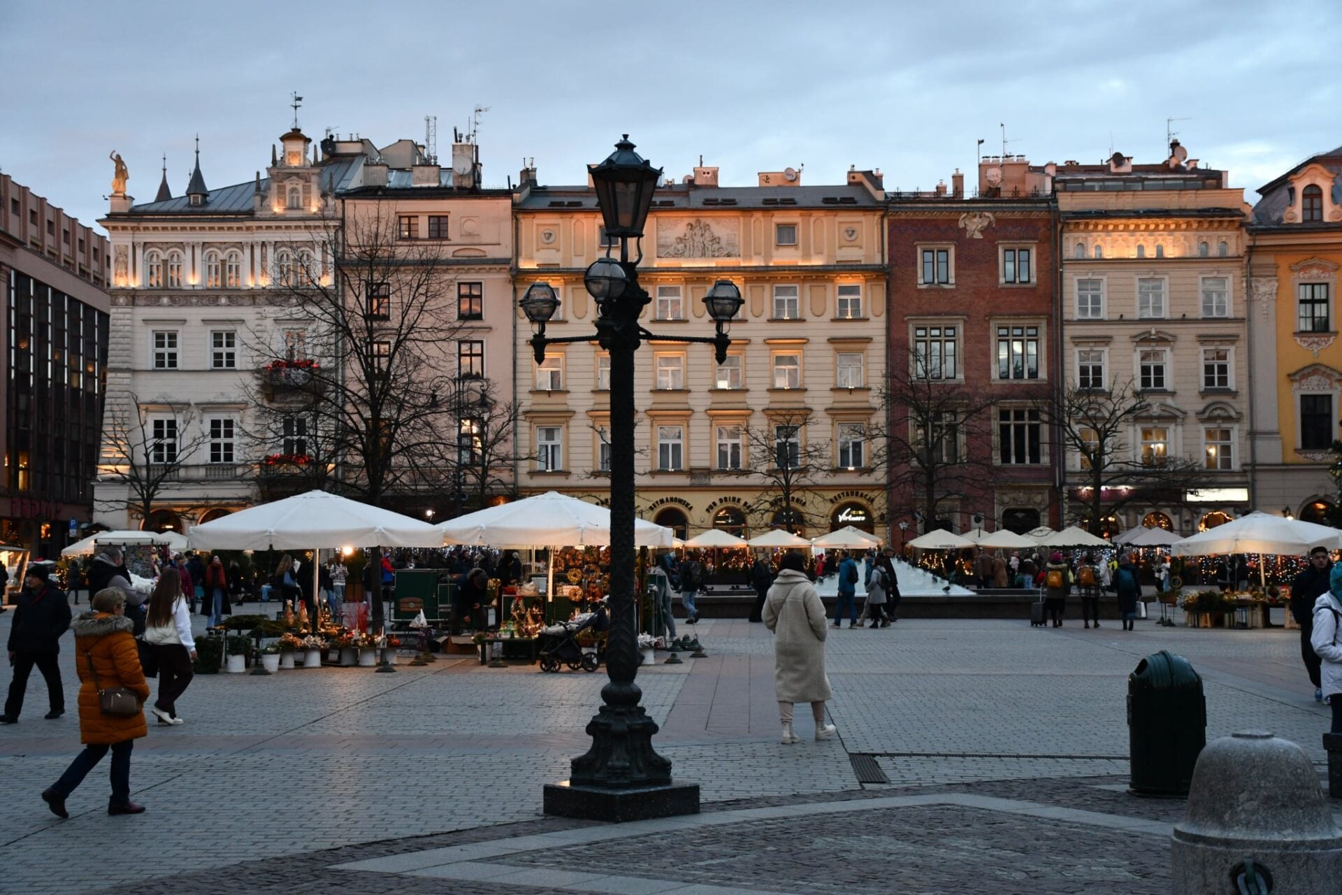 Η Κρακοβία, ένα μεσαιωνικό παραμύθι, μεταμορφώνεται σε μια μαγευτική χριστουγεννιάτικη αγορά από τα τέλη Νοεμβρίου, με την κεντρική πλατεία της να γεμίζει με αρώματα ζεστού κρασιού και παραδοσιακών λιχουδιών. Η Βασιλική της Αγίας Μαρίας, με τους άνισους πύργους της, και η Αίθουσα Υφασμάτων, σύμβολο του παλιού εμπορίου, δεσπόζουν στην πλατεία, ενισχύοντας την ιστορική ατμόσφαιρα.