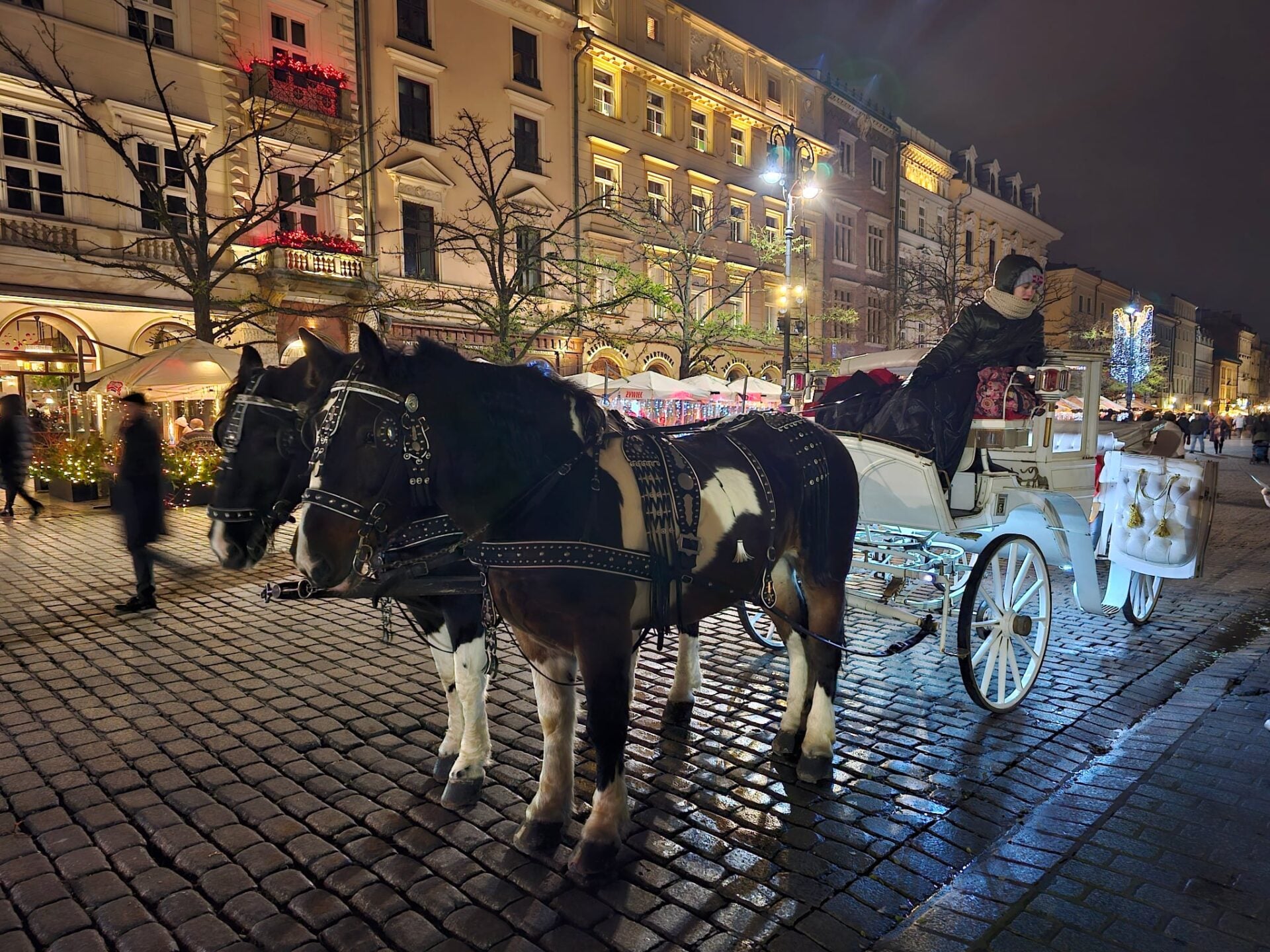 Οι ιππήλατες άμαξες προσφέρουν ρομαντικές βόλτες στα εμβληματικά σημεία της πόλης, δημιουργώντας μια νοσταλγική εμπειρία. Η χριστουγεννιάτικη αγορά της Κρακοβίας συνδυάζει ιστορία, παράδοση και γιορτινή ζεστασιά, κάνοντας την επίσκεψη αξέχαστη.