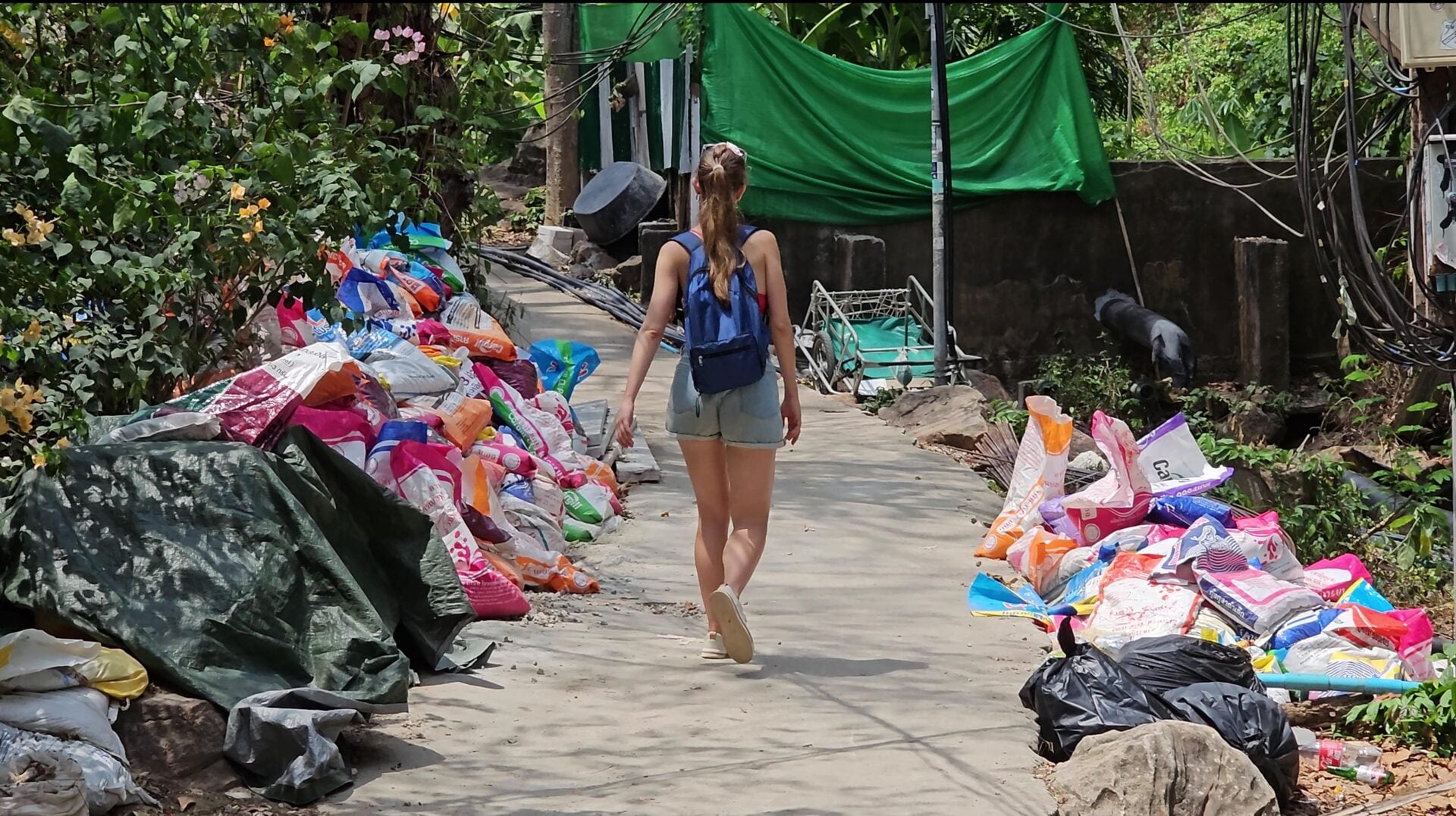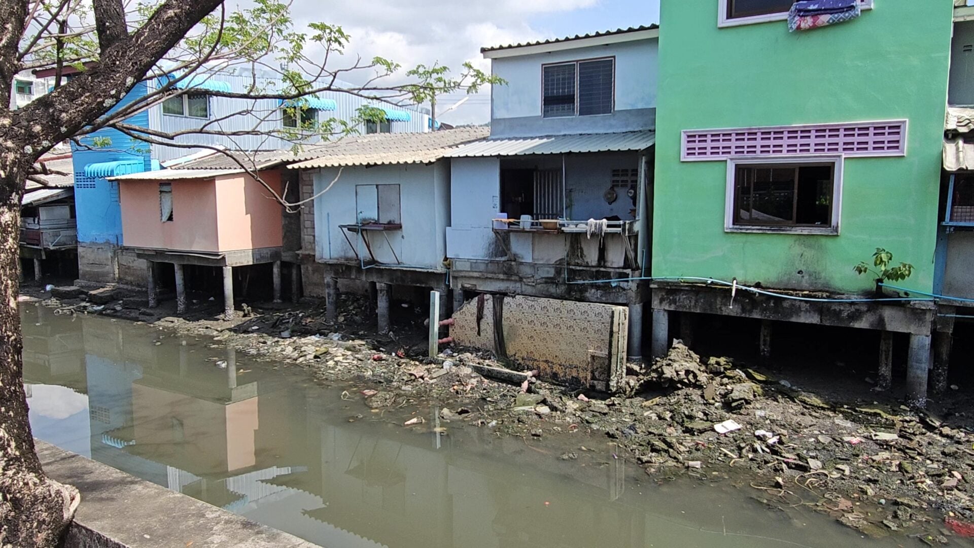 Εδώ είναι τα λαϊκά εργατικά προάστια, εκεί που θα δεις την πραγματική Ταϊλάνδη έξω από το τουριστικό άρωμα. Εδώ δεν μυρίζει ωραία, μυρίζει φτώχεια και δυσκολία. Τα κτίρια είναι φθαρμένα, οι πολυκατοικίες γεμάτες ζωές που στριμώχνονται, και σε ορισμένα σημεία σπίτια στέκονται πάνω από στάσιμα, βρώμικα νερά, με πρόχειρες κατασκευές και ελλιπείς υποδομές. Τα απόβλητα καταλήγουν στο ποτάμι, τα σκουπίδια συσσωρεύονται, και η καθημερινότητα έχει μια υλικότητα που δεν μπορείς να αγνοήσεις.