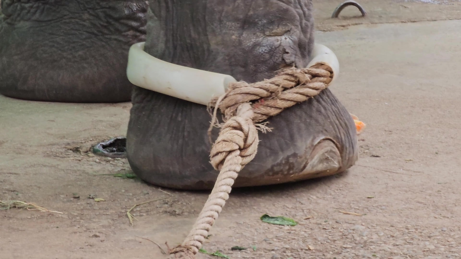 Τα σημάδια είναι εκεί, αρκεί να τα διαβάσεις. Οι επαναλαμβανόμενες κινήσεις, το ελαφρύ μπρος-πίσω του σώματος, το άδειο βλέμμα. Οι αλυσίδες είναι τόσο κοντές που δεν τους επιτρέπουν να κινηθούν φυσιολογικά. Τα τεράστια αυτά ζώα, που στη φύση ζουν σε κοινωνικές ομάδες, με ισχυρούς δεσμούς και περίπλοκες συμπεριφορές, βρίσκονται εδώ μόνα, περιορισμένα, αποκομμένα από οτιδήποτε φυσικό.