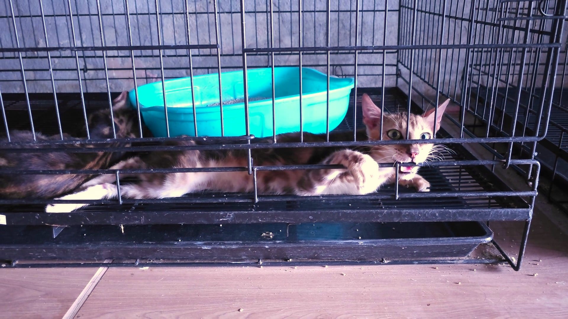 Αυτές οι γατούλες κλεισμένες μέσα σε τόσο μικρά μεταλλικά κλουβιά ήταν δύσκολη εικόνα. Η μία κοιτούσε το φώς και την ελευθερία, η άλλη δάγκωνε συνέχεια τα κάγκελα. Μια προσπάθεια να κόψει τα δεσμά της και να φύγει. Τα δόντια της πληγωμένα έτοιμα να σπάσουν, το αδύναμο κορμί ξαπλωμένο στην λαμαρίνα. Αυτό όμως που δεν ξεχνιέται είναι το βλέμμα, ένταση, απελπισία, άγχος και φόβος.