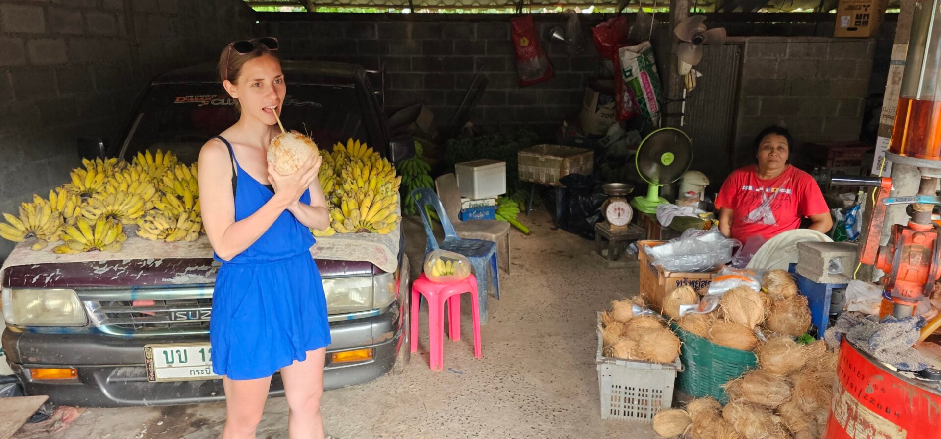 Μετά περνούσαμε από τη φίλη μας την Sunan, που με μια ματσέτα μας έκοβε φρέσκες καρύδες και πίναμε το νερό τους, γεμάτο ηλεκτρολύτες. Και ύστερα ερχόταν το καλύτερο: ο φίλος μας ο Red μας άφηνε να κόβουμε μόνοι μας ώριμα μάνγκο κατευθείαν από τα δέντρα του.