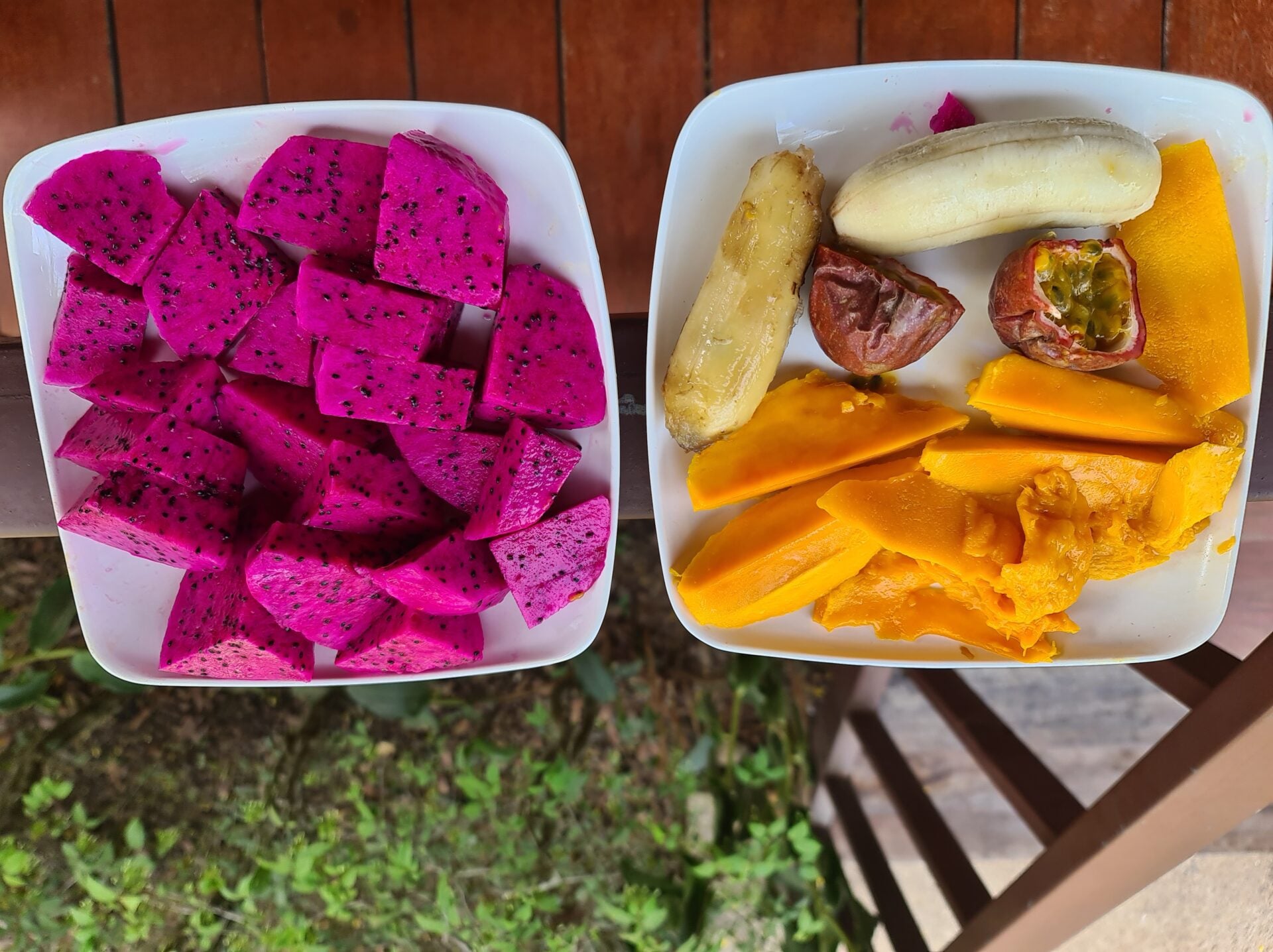 Αν είσαι χορτοφάγος όπως εμείς, στην Ταϊλάνδη θα βρεις την χαρά σου με τα φρούτα. Ήταν μια μικρή καθημερινή τελετουργία να βγαίνουμε το πρωί για να πάρουμε φρέσκα φρούτα.