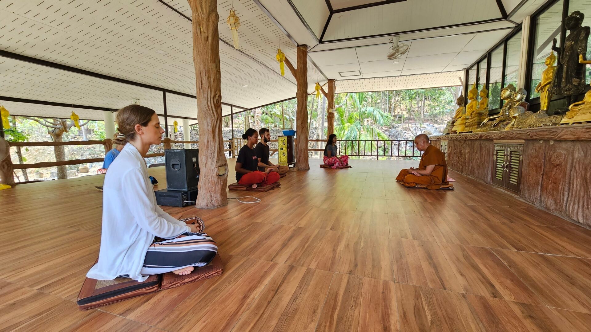 Το πρωί, μετά την υπέροχη φρουτοσαλάτα μας, πηγαίναμε στο βουδιστικό μοναστήρι για μία ώρα διαλογισμού. Στην αρχή μας έδινε κάποιες οδηγίες ο βουδιστής καλόγερος και ξεκινούσαμε περπατώντας ξυπόλητοι πάνω κατω στο πάτωμα. Μετά καθόμασταν στη στάση του λωτού και προσπαθούσαμε να ηρεμήσουμε τον μυαλό μας.