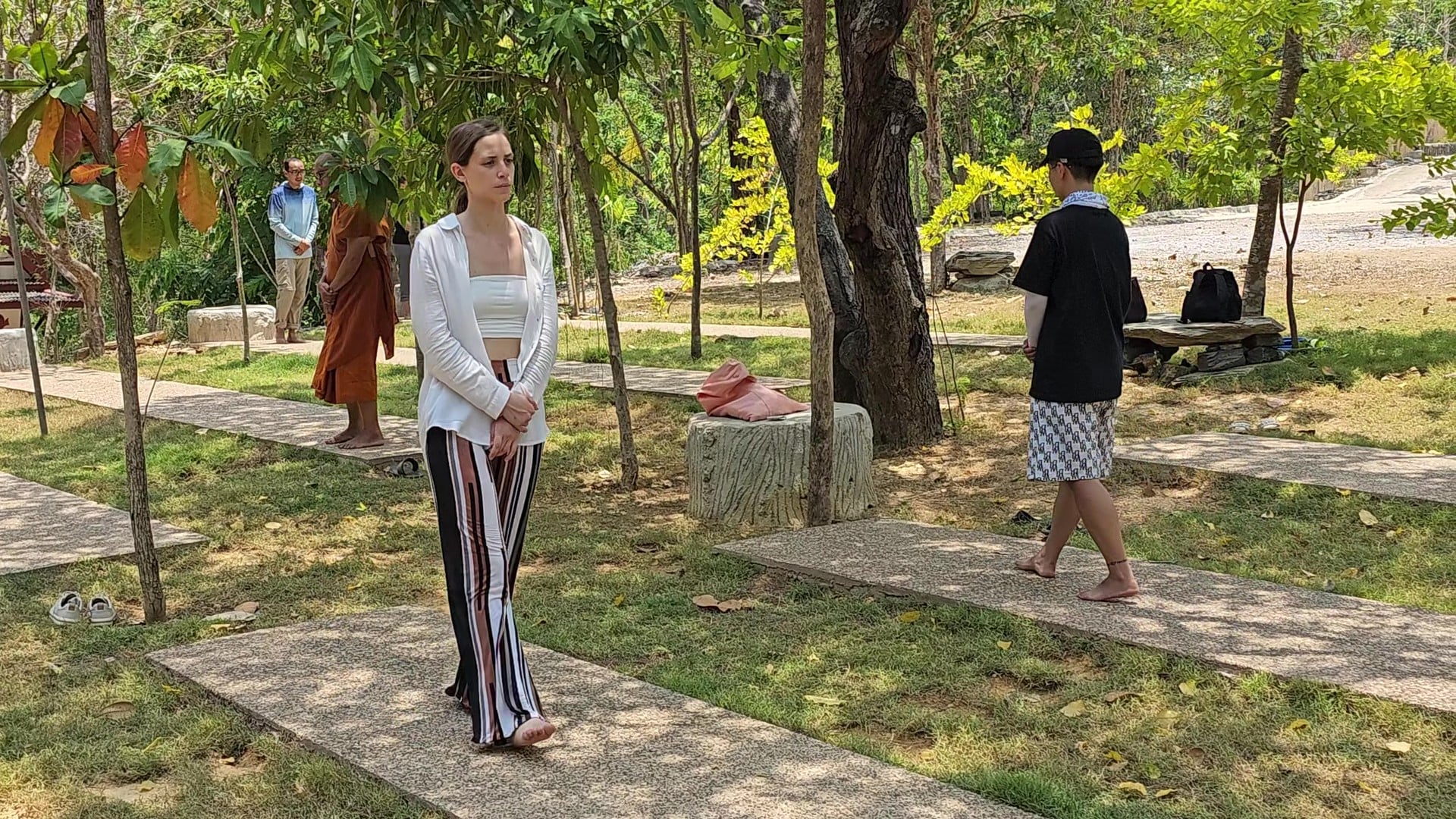 Μετά τον καθιστικό διαλογισμό και τις νέες οδηγίες από το βουδιστή μοναχό, περνούσαμε στον περιπατητικό διαλογισμό. Σε ένα συγκεκριμένο σημείο του κήπου, περπατούσαμε ξυπόλητοι πάνω κάτω στην ίδια μικρή διαδρομή, ξανά και ξανά. Η επανάληψη της κίνησης, σχεδόν μηχανική στην αρχή, άρχιζε σιγά – σιγά να σε ηρεμεί.