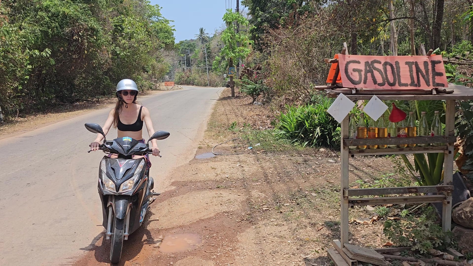 Αυτή η πρακτική είναι πολύ διαδεδομένη στην επαρχία της Ταϊλάνδης. Λειτουργεί άτυπα αλλά απολύτως οργανωμένα: οι οικογένειες αγοράζουν βενζίνη χονδρικά από μεγαλύτερα πρατήρια και την μεταπωλούν σε μικρές ποσότητες. Είναι ένας τρόπος μικροεισοδήματος, μια μορφή τοπικής, καθημερινής οικονομίας που στηρίζεται στην ανάγκη και στην εμπιστοσύνη. Δεν υπάρχουν ταμπέλες, δεν υπάρχουν αντλίες — μόνο μπουκάλια και ένα χαμόγελο.