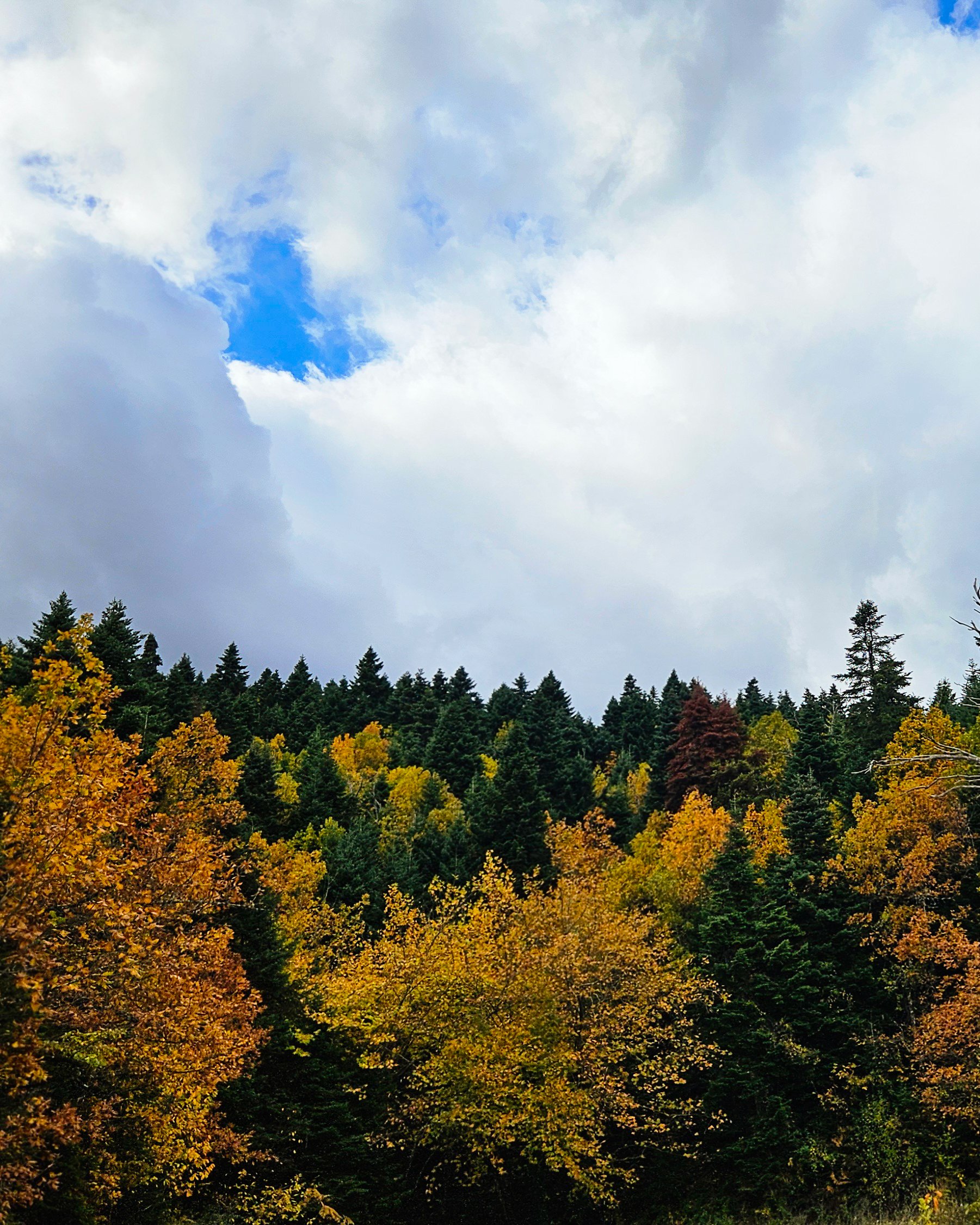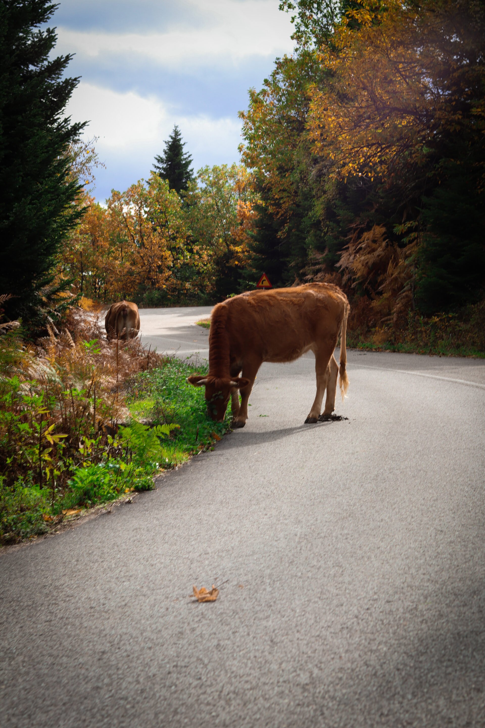 Στις στροφές των Αγράφων, ο χρόνος μοιάζει να κυλά διαφορετικά. Το βουνό αγκαλιάζει τον δρόμο, οι κορυφές υψώνονται μέσα σε χρώματα φθινοπώρου και ανάμεσά τους, αγελάδες περπατούν ήρεμα, σαν να ορίζουν εκείνες το ρυθμό της μέρας.