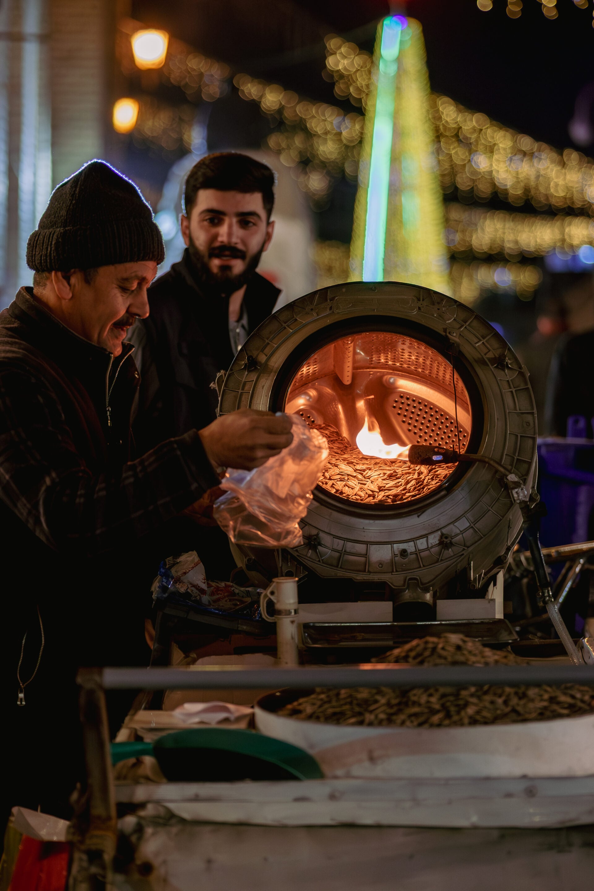 Μικροπωλητής στο Ερμπίλ. Χρησιμποποιούν κάδους από πληντύριο ρούχων για να προετοιμάσουν τους ηλιόσπορους