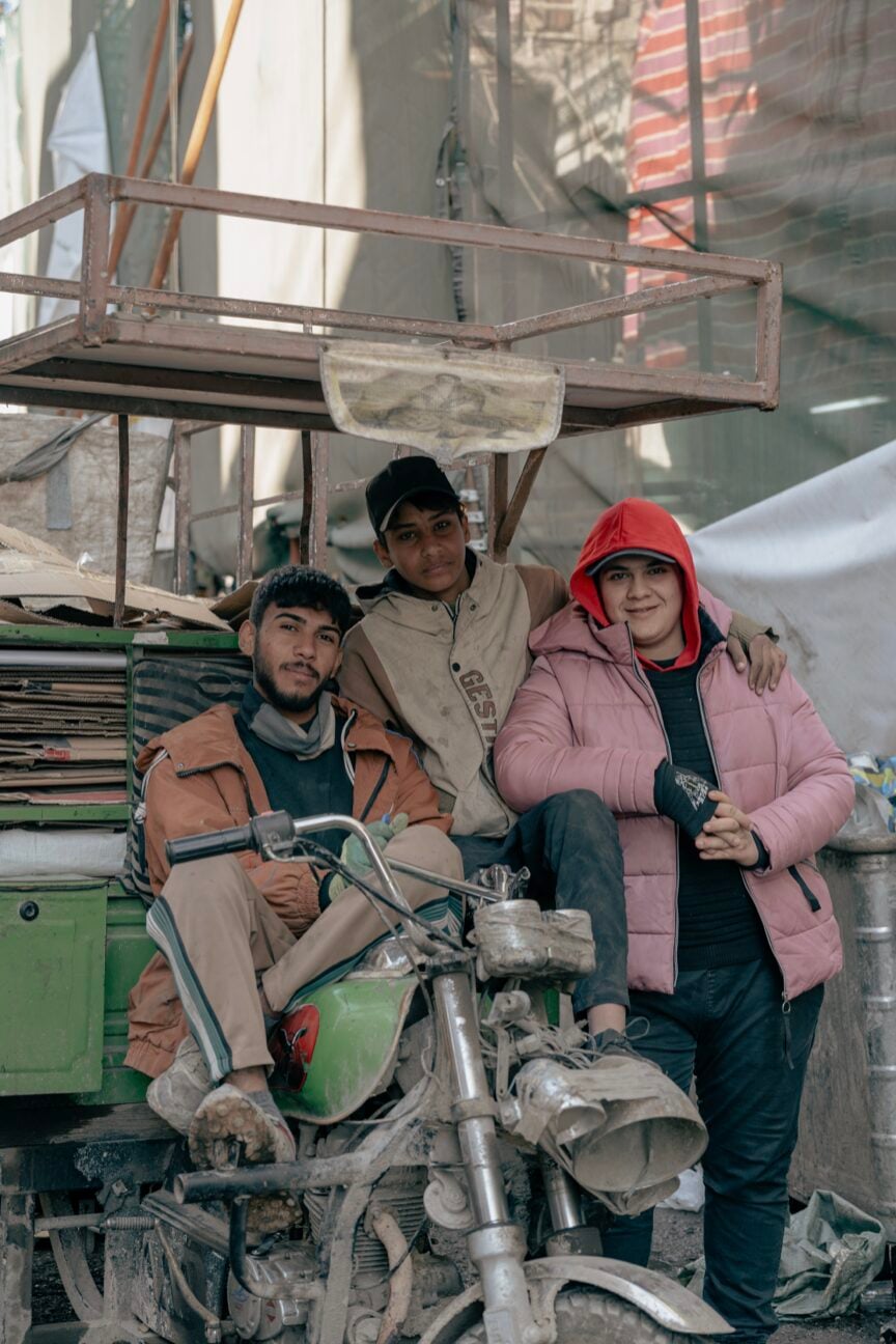 Παρέα εφήβων ποζάρει με περηφάνια πάνω στο τρίκυκλο τους. Βαγδάτη