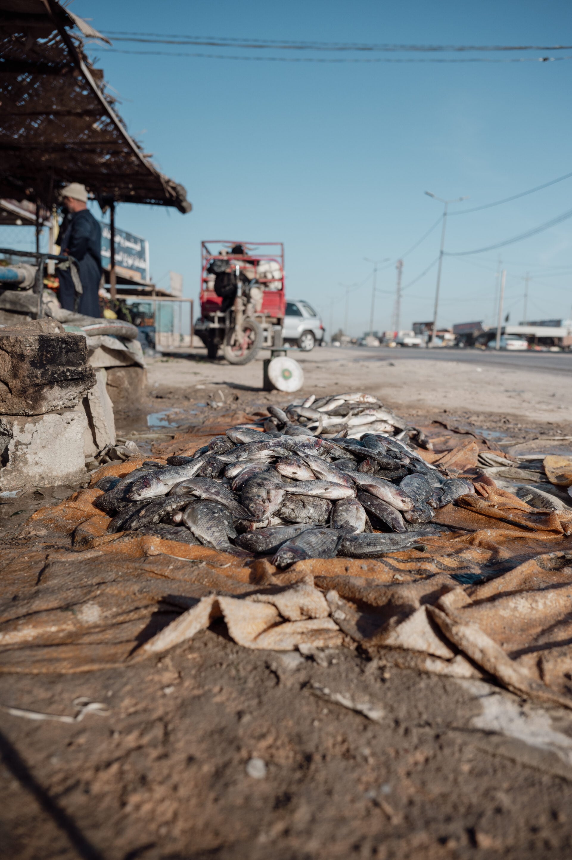 Νεαρός στο κέντρο της Βαγδάτης πουλάει ψάρια. Το ψάρι ονομάζεται Μασγκούφ και είναι ίδιο με το δικό μας γριβάδι